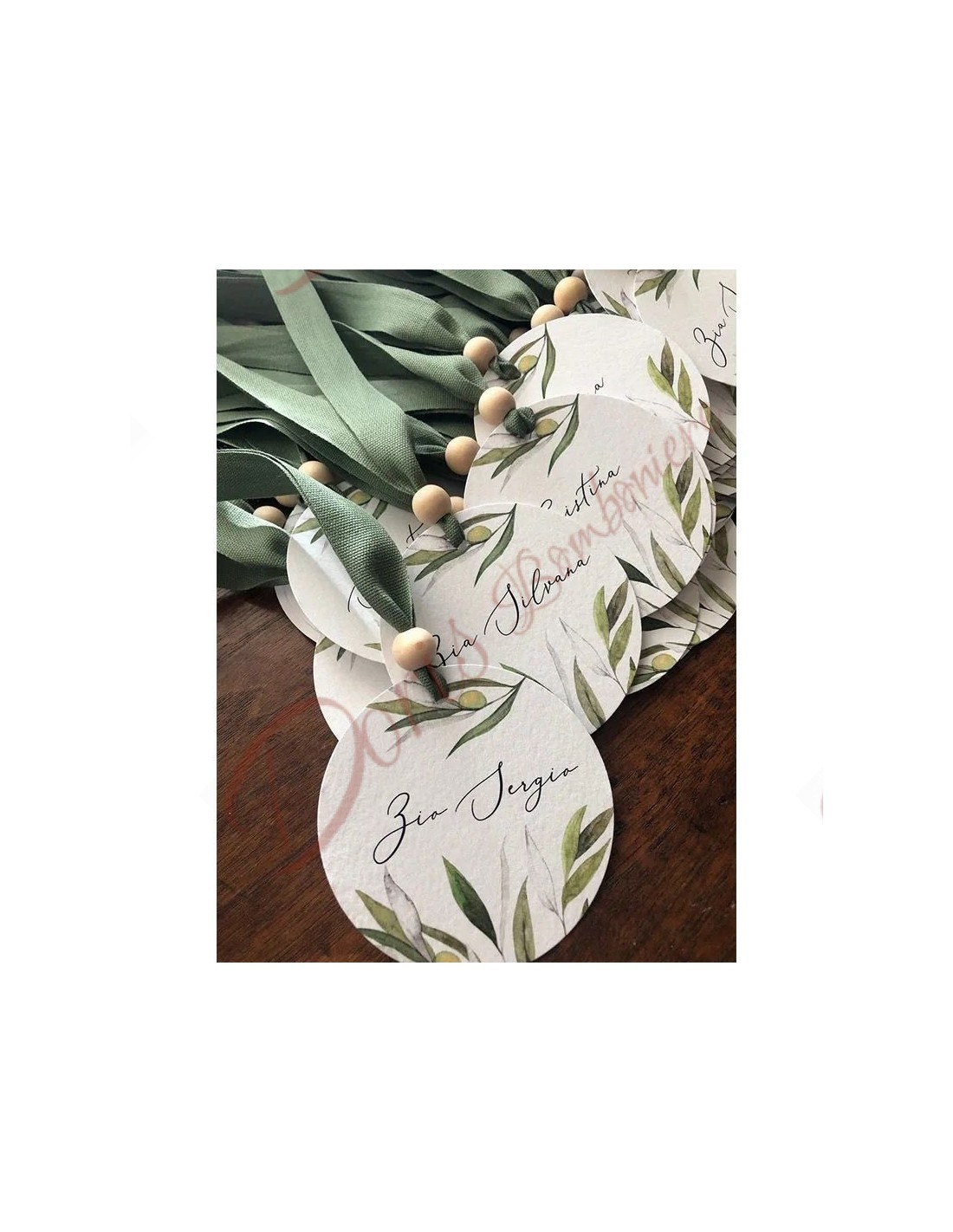 Segnaposto tema ulivo olivo con cordoncino in tessuto stampa e creazione personalizzata