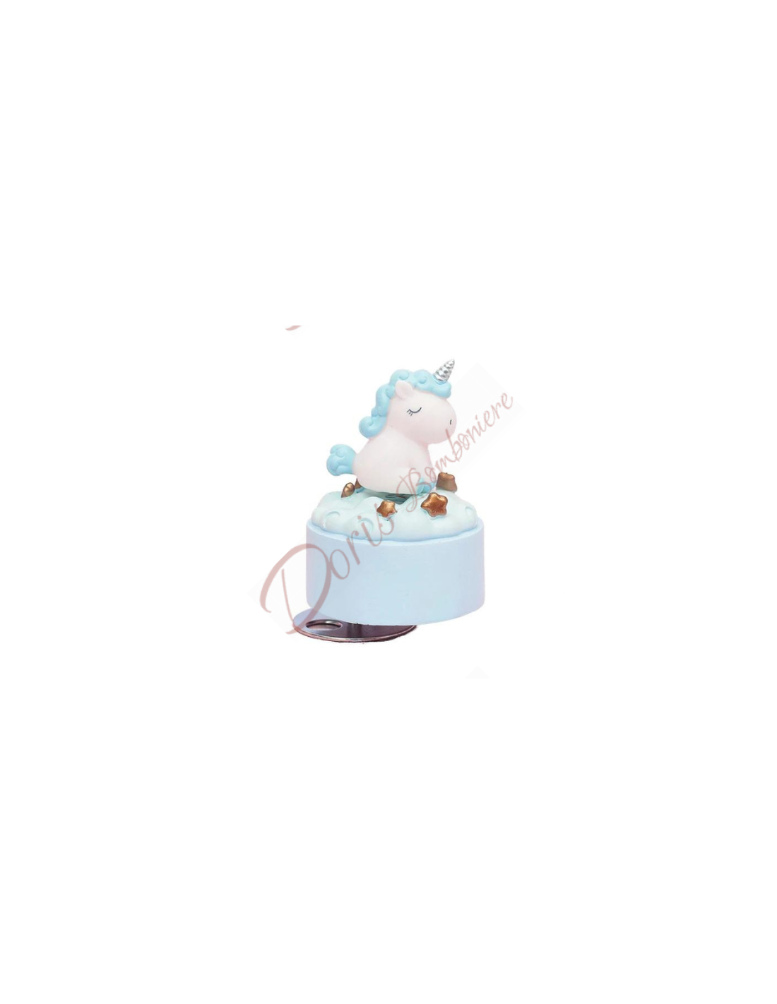 Bomboniere carillon bimbo maschietto con unicorno azzurro cielo