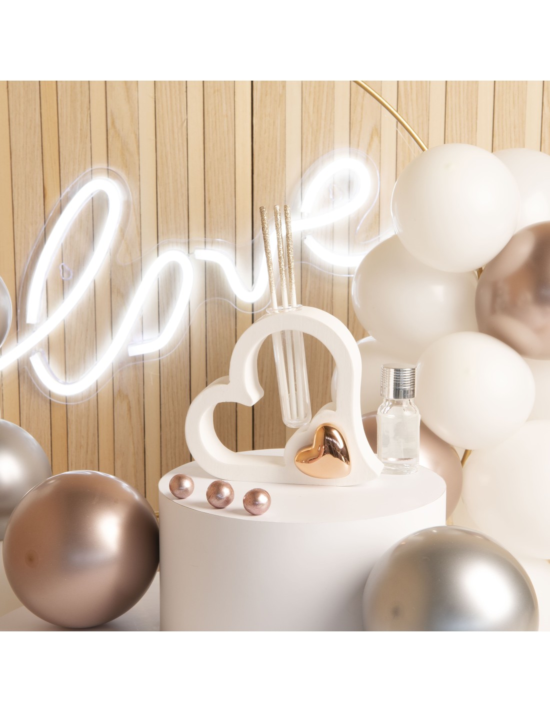 Scopri la bellezza senza tempo della nostra bomboniera diffusore di profumo a forma di cuore bianco in gesso, con un cuore in porcellana color oro rosa specchiato. Con le sue misure di 11 × 9,7 × 2,5 cm, questa bomboniera è un vero gioiello che catturerà l'attenzione di tutti.