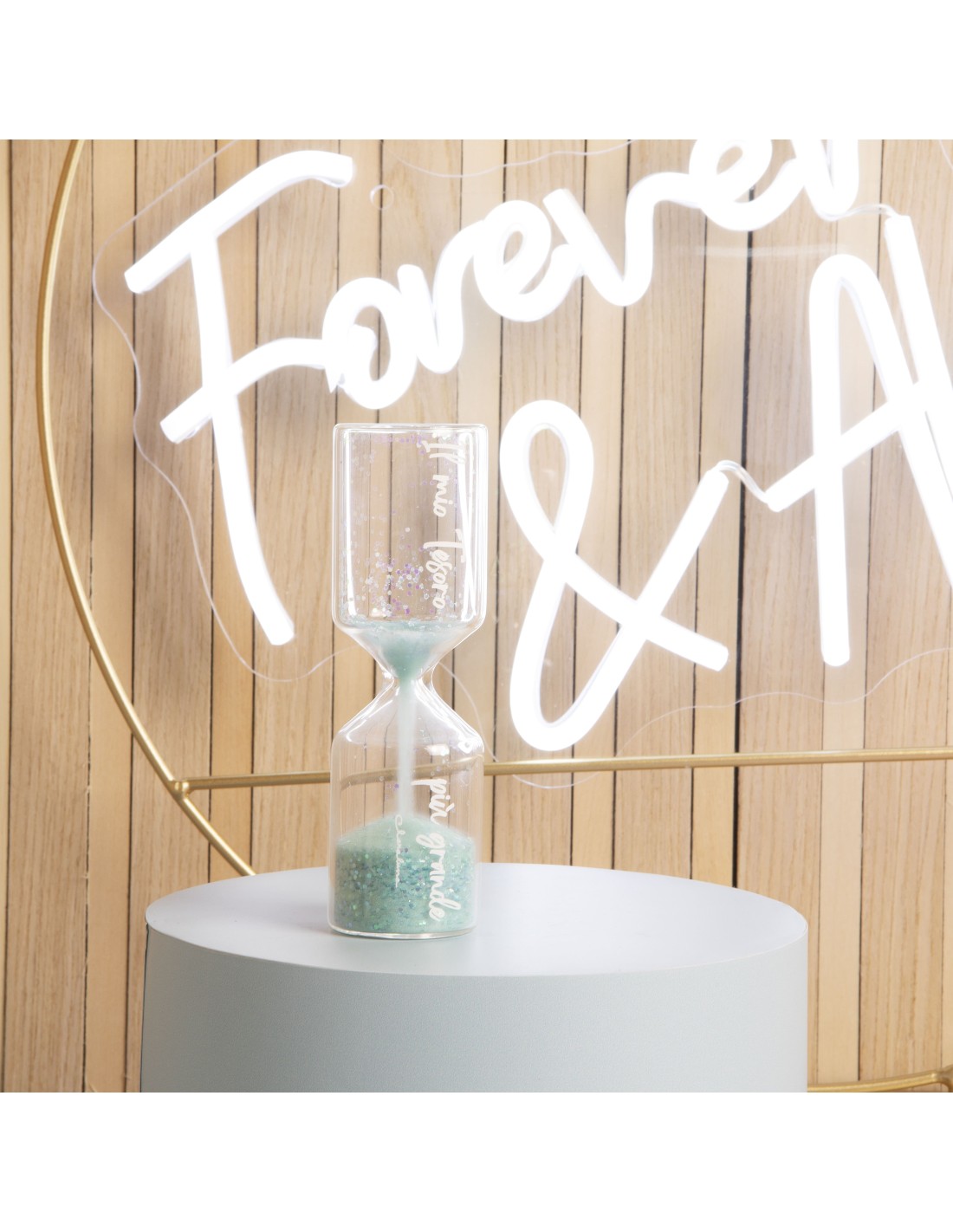 Bomboniere claraluna clessidra in vetro con sabbia azzurra 3.5x12 cm