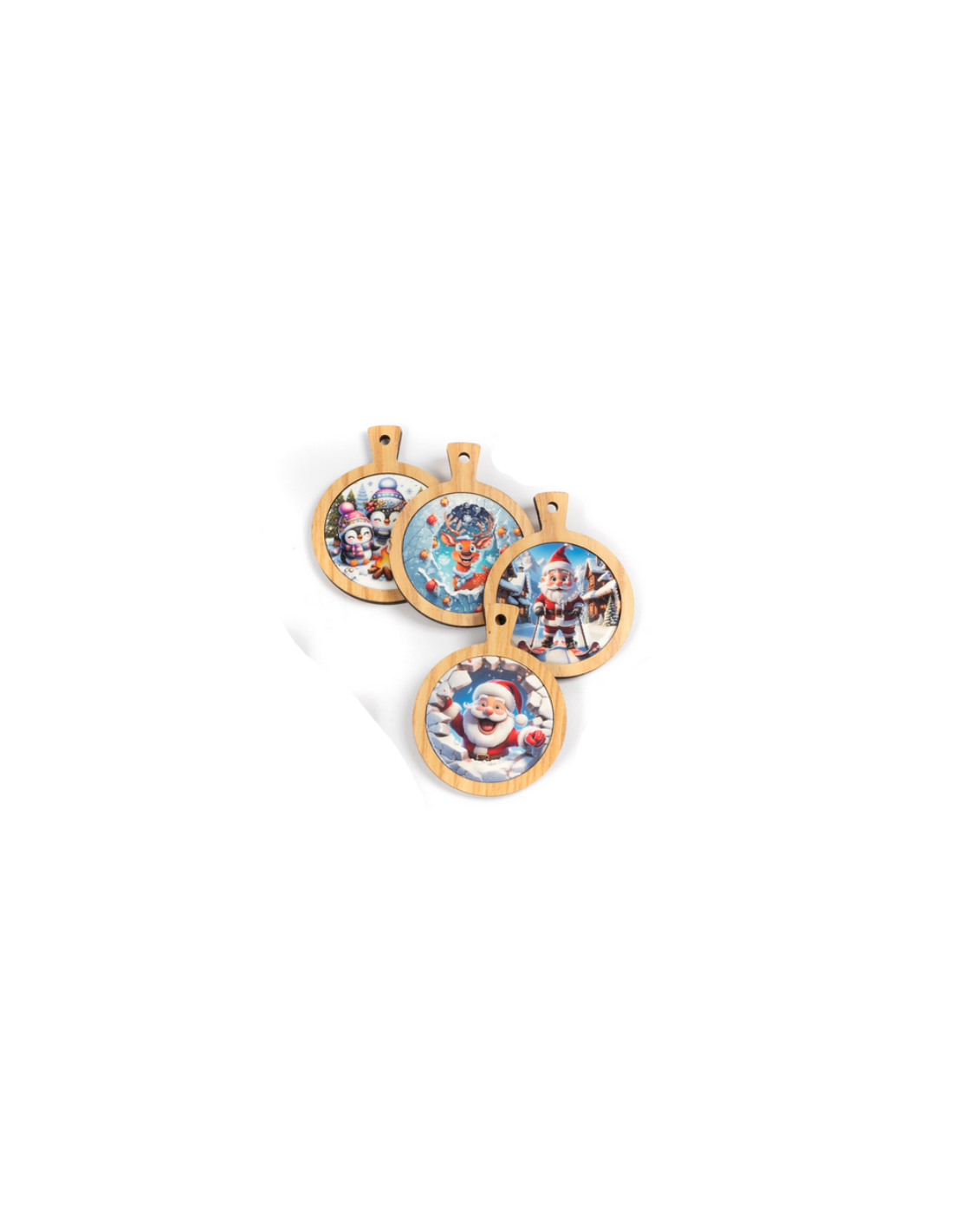 Vassoio Magnetizzato Tondo Natalizio 10,3 cm in Porcellana e Legno – 4 Soggetti Assortiti