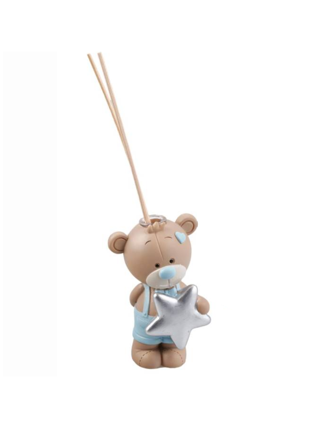 Un dolcissimo orsetto profumatore con una stella argentata tra le mani, simbolo di sogni e nuove speranze. Pensato per celebrare la nascita o il battesimo di un bimbo, unisce eleganza e sentimento in un unico dono. Alto 10 cm, diffonde una delicata fragranza che avvolge di dolcezza ogni ambiente. Un ricordo unico, perfetto come bomboniera o regalo che parla di amore, famiglia e nuove emozioni.