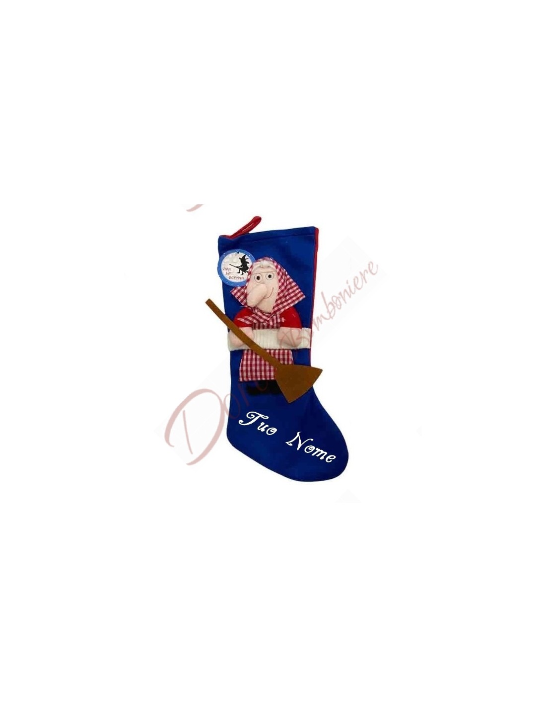 Calza della befana personalizzata in panno blu e rosso con befana peluche cm 35