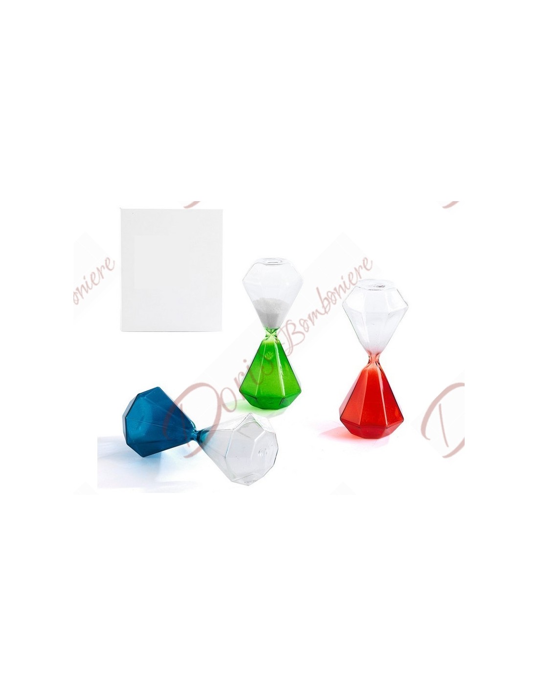 Bomboniere clessidra forma di diamanete in 3 colorazioni assortite blu, verde e rosso cm 8 altezza