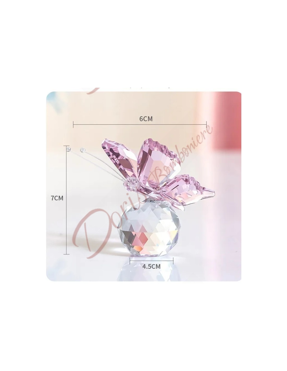 Bomboniera farfalla in cristallo su sfera COLORE ROSA 6x7x4.5cm battesimo comunione cresima nozze