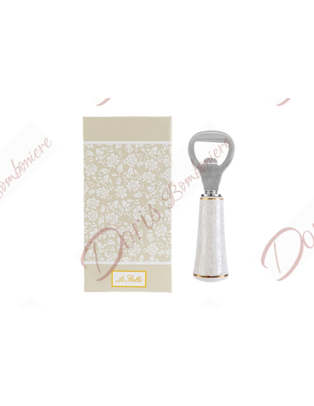 Bomboniera matrimonio elegante apribottiglie linea white lady cm 12 manico ceramica con scatola