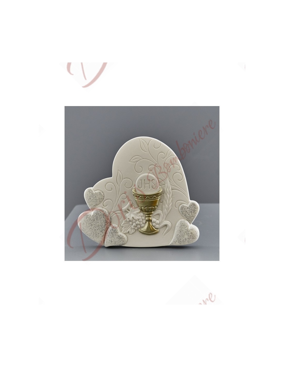 Bomboniere comunione bambina o bombino cuore con calice uva e cuori immagine sacra 8x7.6