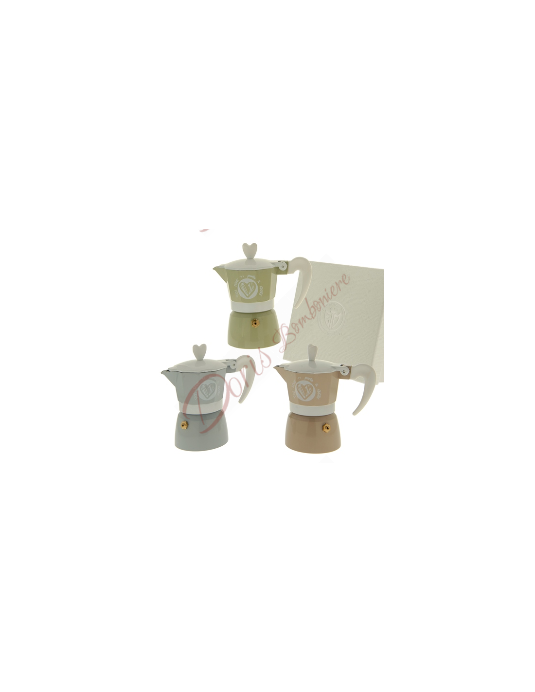 Bomboniera moka caffettiera con frase colori assortiti per 2 tazze di caffè bomboniera utile cucina h 12