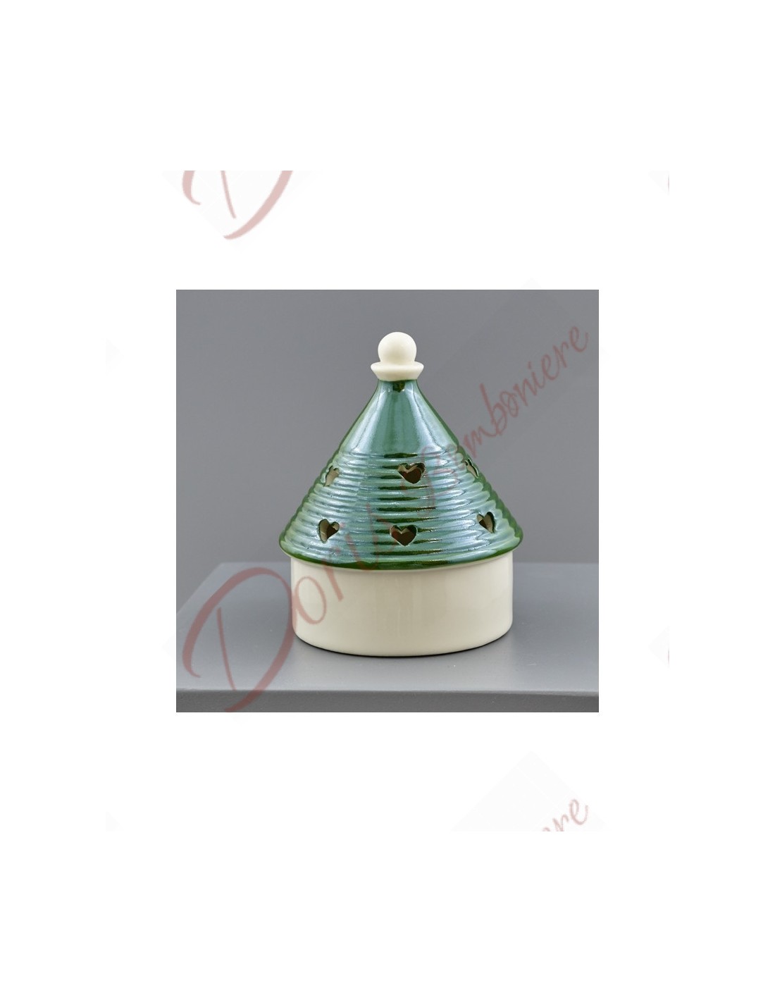 Bomboniere trullo in porcellaba colore verde ricorrenza e festa cerimonia all'italiana Alberobello