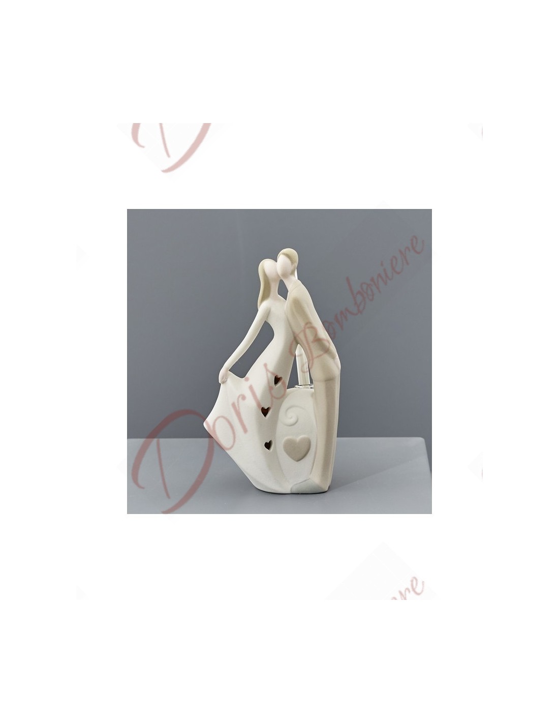Bomboniere matrimonio coppia sposi abbraccio stilizzato con bacoi in ceramica profumatore e luce led h 18.5 cm
