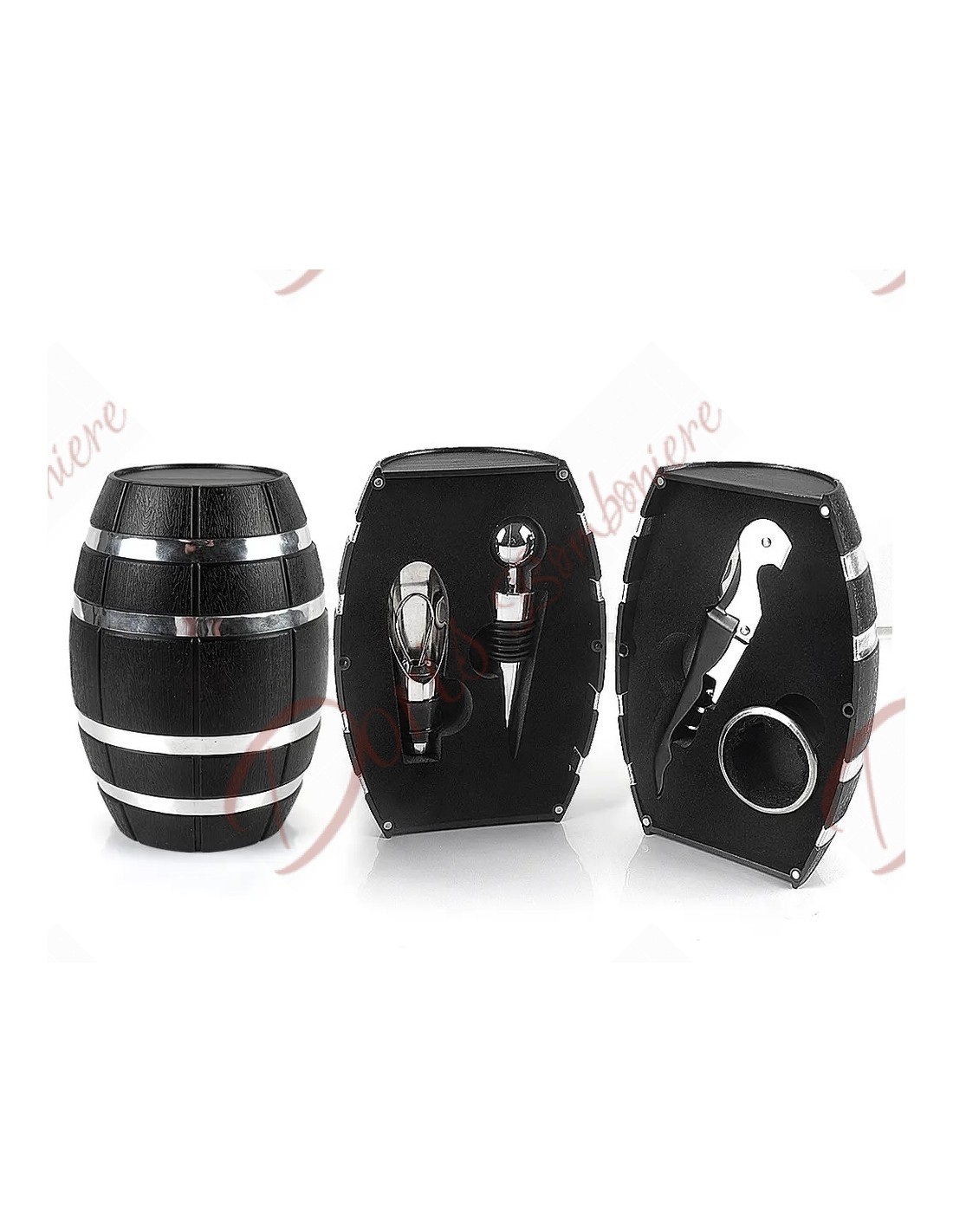 Bomboniere tema vino nuova collezione piccola botte di vino con all'interno 4 accessori utensili per enologia