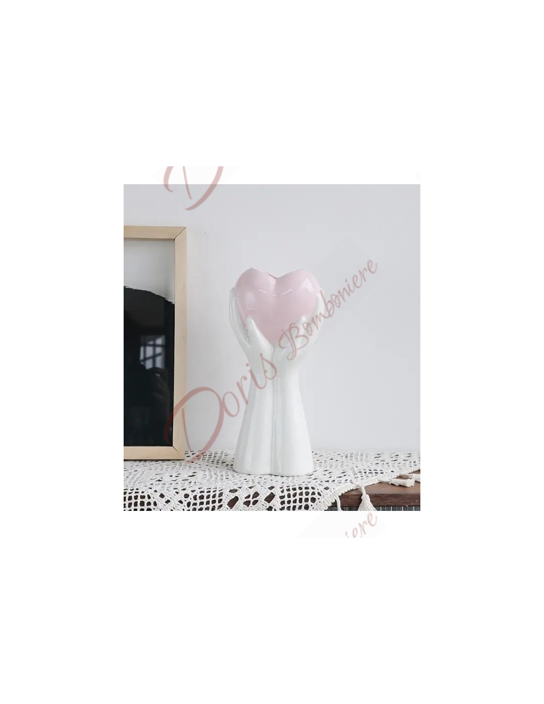 Bomboniere matrimonio vaso centrotavola mani in porcellana bianca con cuore porcellana rosa