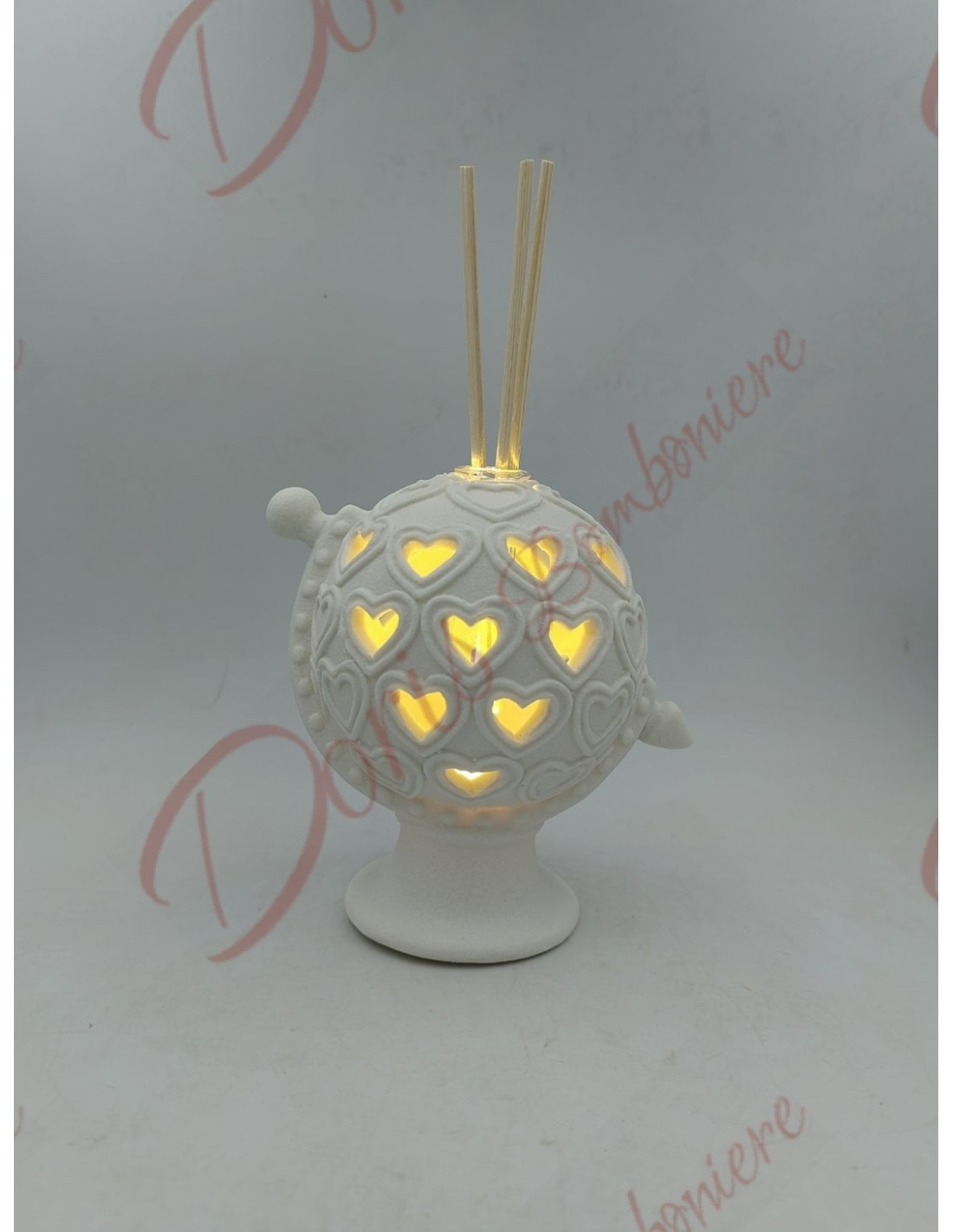 Bomboniere matrimonio tema viaggio profumatore con luce a led gobo cuori porcellana bianca
