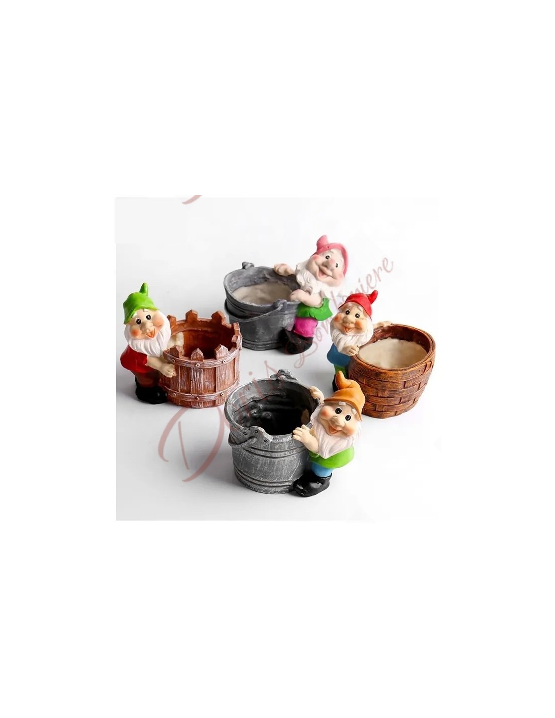 Bomboniere piantina grassa vaso in resina nani gnomi in resina