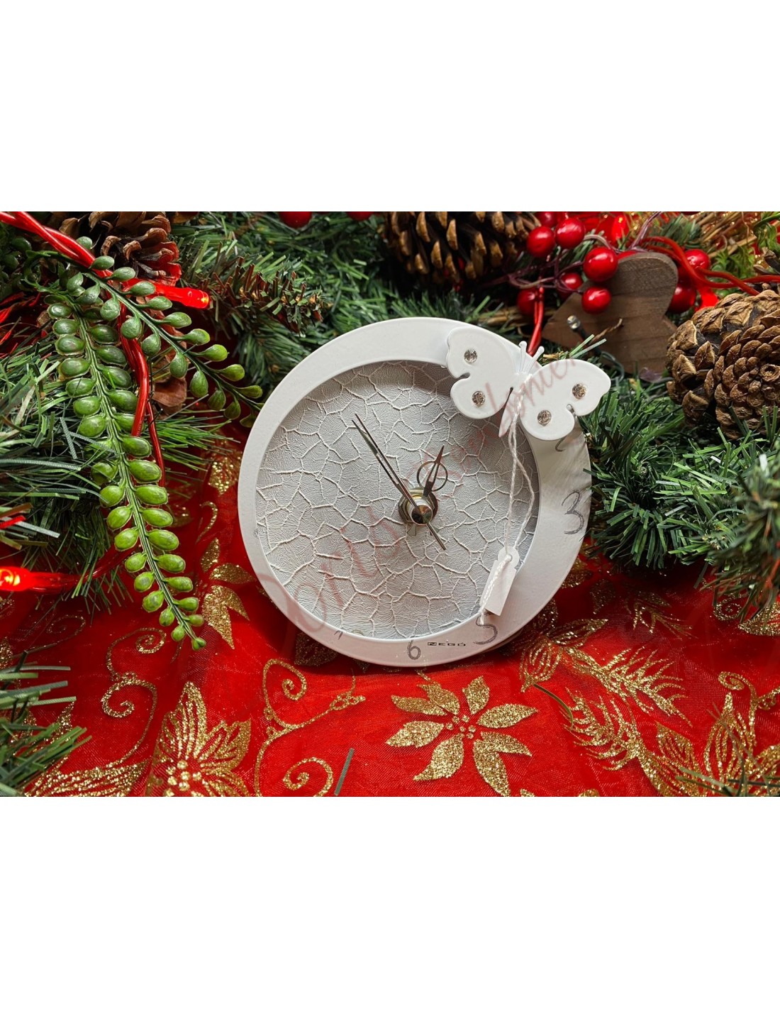 Orologio metallo con farfallina strass diam.12 cm