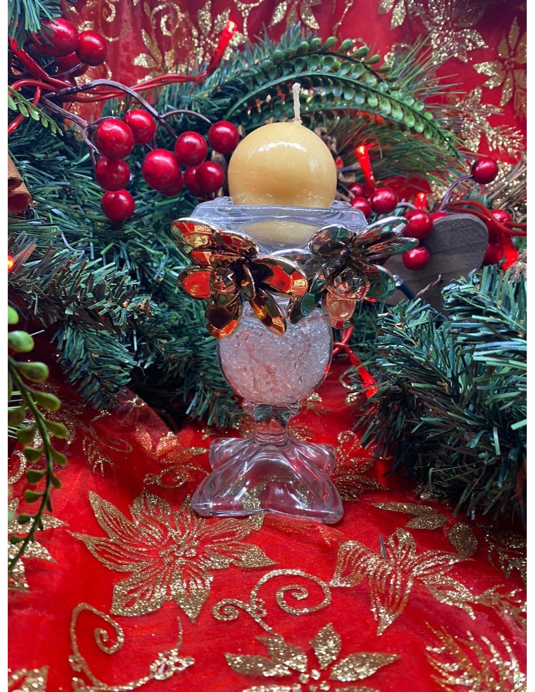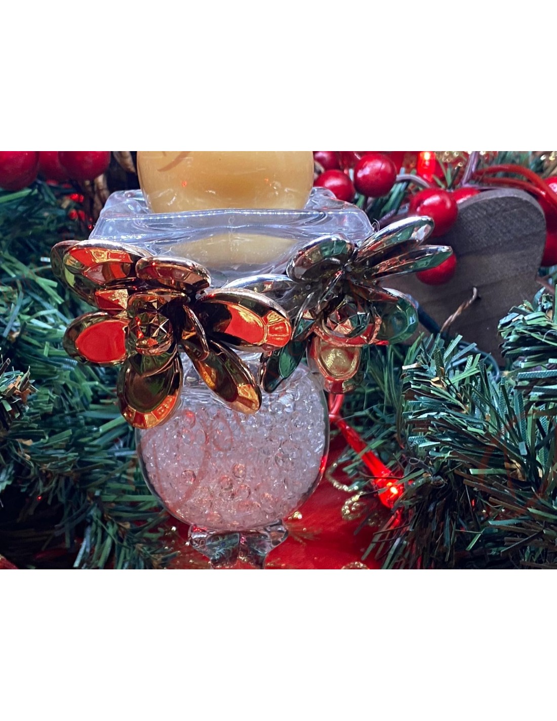 Porta candela con fiori in vetro
